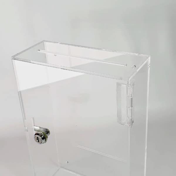 Este buzón transparente de metacrilato es la solución ideal para recopilar sugerencias, comentarios o votos en oficinas, eventos y establecimientos comerciales. Fabricado en metacrilato de alta calidad, su diseño minimalista y resistente combina funcionalidad y estilo moderno, adaptándose perfectamente a cualquier entorno.