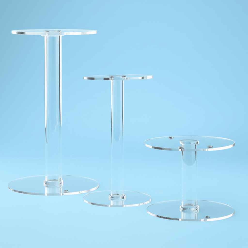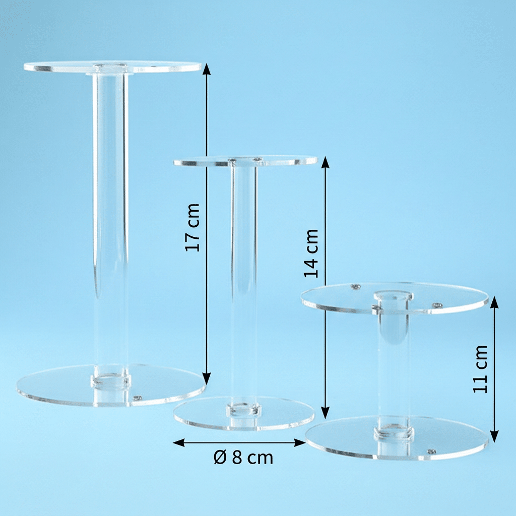 Descubre el conjunto de tres elevadores de metacrilato transparente , un accesorio versátil y elegante que combina diseño y funcionalidad.