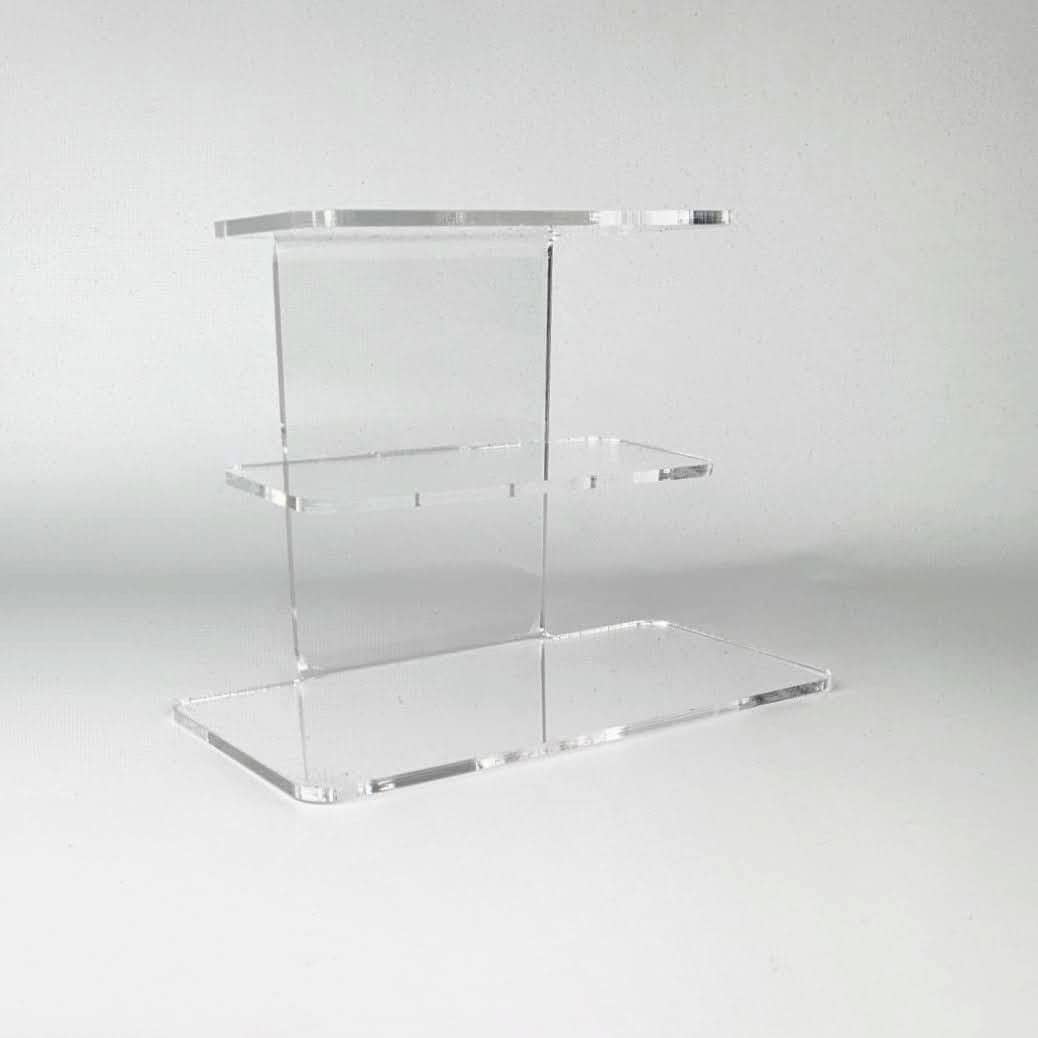 Medidas:Bandeja inferior 20×10 cm (ancho x profundo)Bandeja intermedia 6.5 x 15 cm (ancho x profundo)Bandeja superior 6.5 x 15 cm (ancho x produndo)Altura 14.5 cm Fabricado en metacrilato…