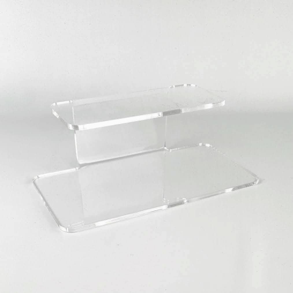 Medidas:Bandeja inferior 20×10 cm (ancho x profundo)Bandeja superior 6.5 x 15 cm (ancho x produndo)Altura 7.5 cm Dos estanterías Fabricado en metacrilato transparente de 3 mm de espesor Cantos…