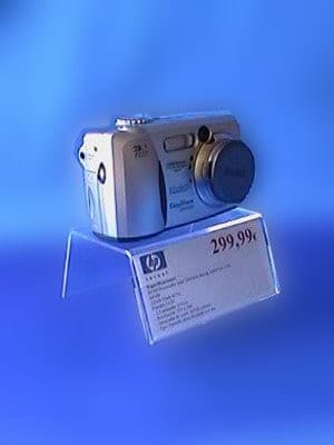 Soporte para camaras fotograficas serie 401 con porta preciosFabricado en metacrilato de 2 mm de espesor con cantos pulidos.Altura 10 cms. ancho 10 cms base 6 cmsSe venden en paquetes de 12 unidades.