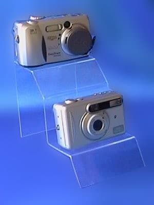 Soporte para camaras fotograficas serie 402Fabricado en metacrilato de 2 mm de espesor con cantos pulidos.Altura 12,5 cms. ancho 10 cms base 6 cms en cada escalonSe venden en paquetes de 6 unidades.