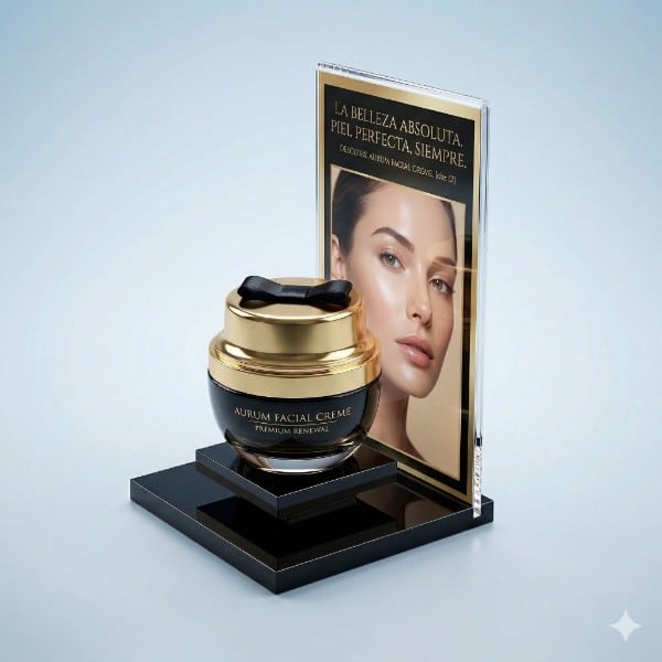 Este glorificador es la solución perfecta para resaltar tus productos cosméticos en tiendas, mostradores o escaparates. Su diseño moderno y minimalista, junto con materiales de alta calidad como el metacrilato, garantiza una presentación impecable que atrae todas las miradas.