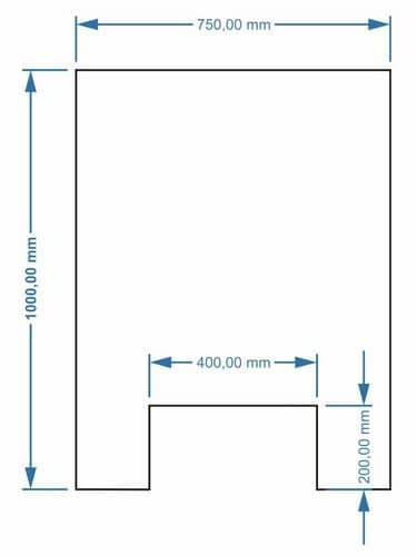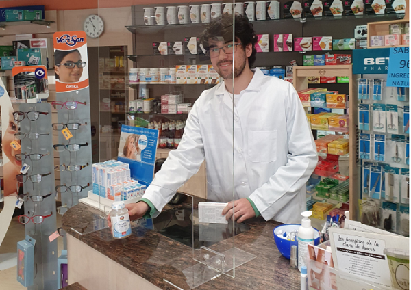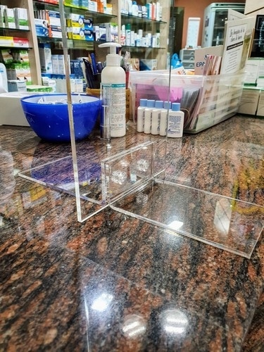 Mampara anticontagio fabricada en metacrilato de 5mm de espesor con cantos pulidos y film de protección