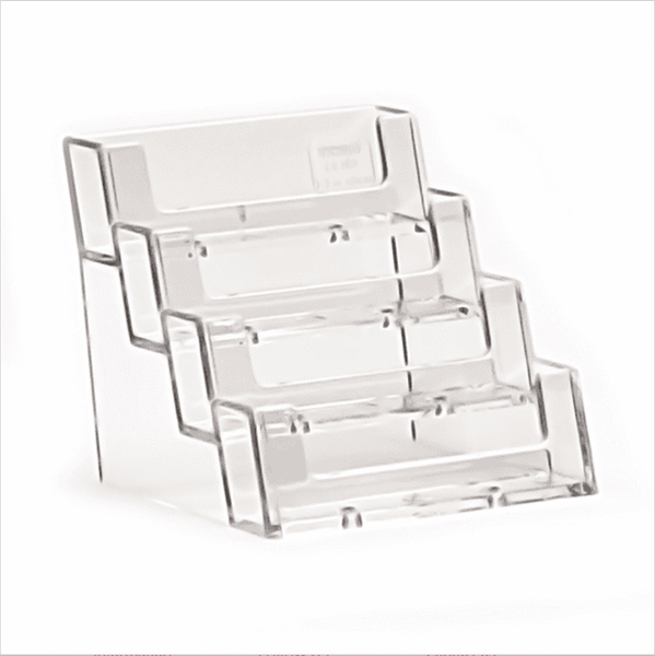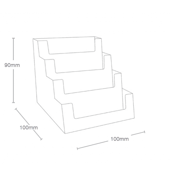 Capaciad del tarjetero 93mm (ancho) 4 escalones Capacidad 18 mm por escalón Material Poliestireno inyectado Color Transparente