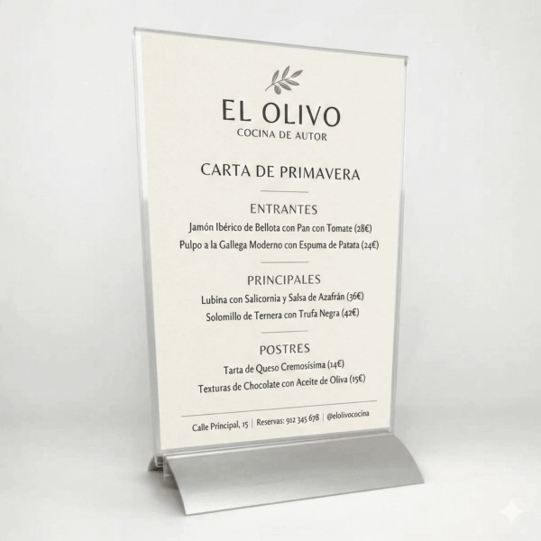 • Portacartel de metacrilato con base de aluminio • Para gráficas desde A7 a A4• La base de aluminio puede ser imprimible.