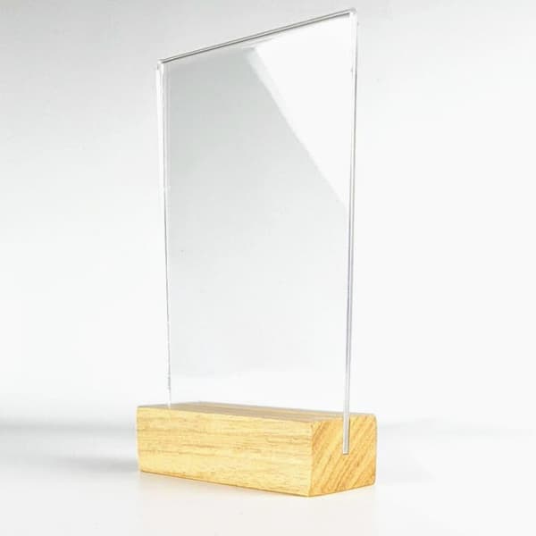 Para gráficas tamaño A5 (148 x 210 mm) Medidas de la base de madera 45x148x30 mm (ancho x largo x alto) Fabricado en metacrilato de 2 mm de espesor Cantos pulido y film de protección Base de madera…
