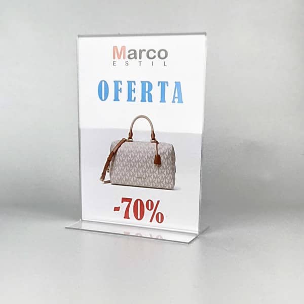 Con este portacarteles, optimiza la presentación de tus mensajes y capta la atención de tus clientes o visitantes. Su diseño sencillo y funcional combina perfectamente con cualquier ambiente y garantiza una excelente visibilidad desde ambos lados.