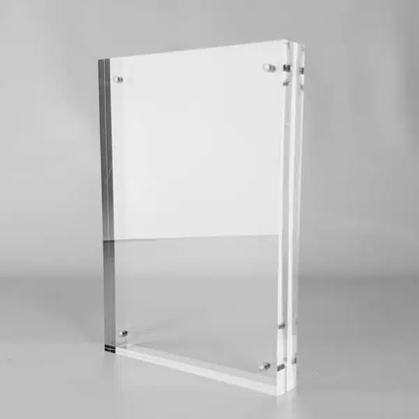 Portacarteles de metacrilato de sobremesa, Portacarteles de metacrilato bloque con imanes, Portacarteles de metacrilatoMarcos de metacrilato bloque con imanes A4 (21×29,7 cm)