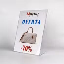 Portacartel inclinado para mejor visión Para gráficas tamaño A4 Vertical (21 x 30 cm) Fabricado en metacrilato transparente de 2 mm de espesor Cantos pulidos Film de protección Todos nuestros…