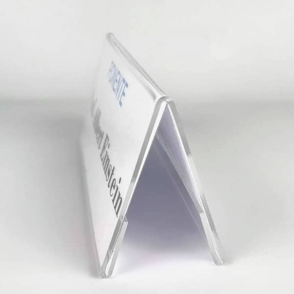 Portacartel 213A7 2 caras Horizontal Vista a las dos carasFabricado en metacrilato de 2 mm de espesor con cantos pulido y film de protecciónMedida: A7 (10 x 7 cm)