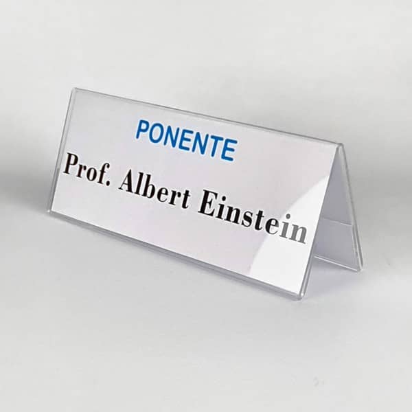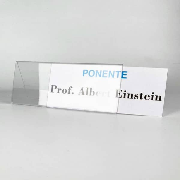 Portacarteles de metacrilato portamombres horizontal a dos caras 21 x 8 cm