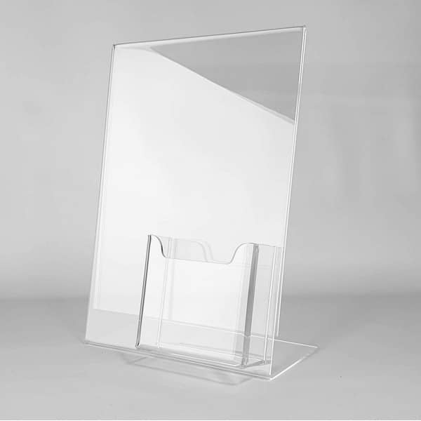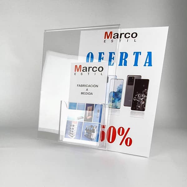 Portacarteles de metacrilato A3 con portafolletos 1/3 A4