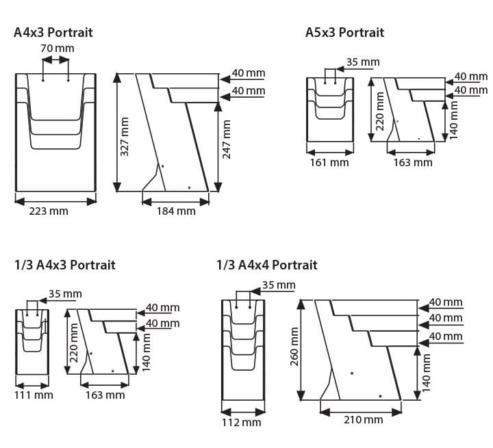 Tamaño de la gráfica 1/3 de A4 (10,5×21 cm) 3 escalones Capacidad 30mm por escalón Material Poliestireno inyectado Color Transparente