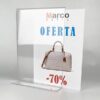 Visión a las dos caras Para gráficas tamaño Desde A6 a A4 Fabricado en metacrilato transparente de 2 mm de espesor Cantos pulidos Film de protección