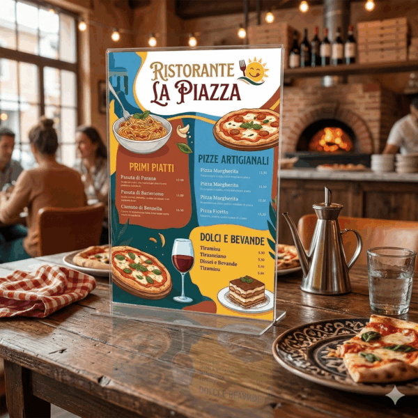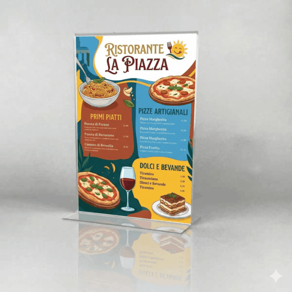 Portamenú de metacrilato con base de aluminio, ideal para mostrar cartas y promociones. Duradero y elegante. ¡Compra ahora desde 3.95€!