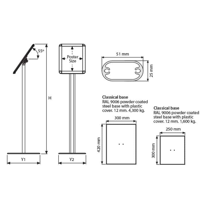 • Base metálica de 25×30 cm color gris RAL 9006 peso 4,3 Kgs