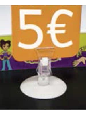 Portaprecios, fabricados de plástico tipo metacrilatobase redonda con diámetro de 5 cm, capacidad de clip superior 1 mm. Altura de la pieza: 50 mm