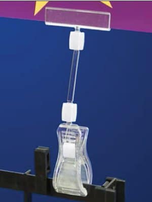 Portaprecios con doble pinza, fabricados poliestireno inyectado, capacidad de abertura de pinza inferior es de 15mm y el clip superor es de 1 mm. Altura de la pieza 135 mm
