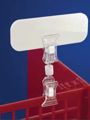 Portaprecios con doble pinza, fabricados poliestireno inyectado, capacidad de abertura de pinza superior y inferior es de 10mm. Altura de la pieza 91 mm