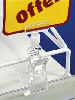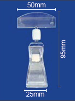 Portaprecios con doble pinza, fabricados poliestireno inyectado, capacidad de abertura de pinza inferior es de 30mm y el clip superor es de 1 mm. Altura de la pieza 95 mm