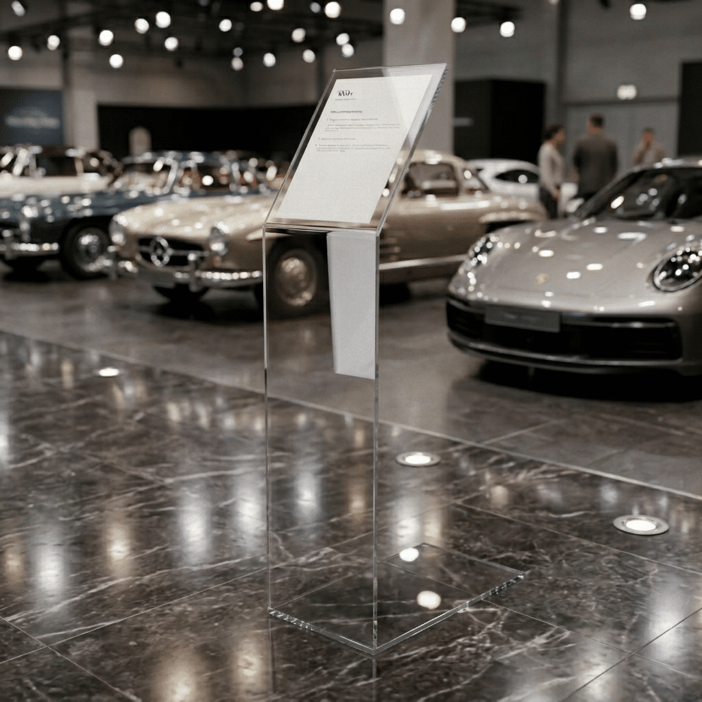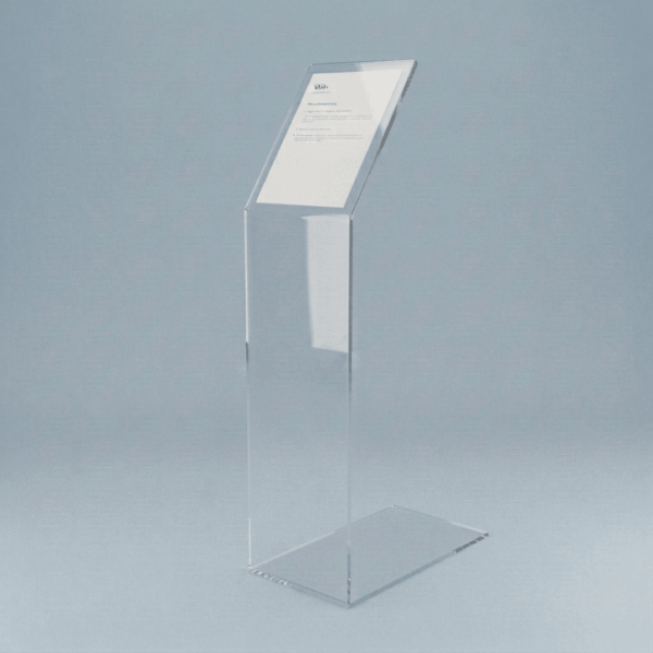 Con una altura totasl de 90 cm y una base estable de 25 x 35 cm, este expositor combina funcionalidad y diseño ergonómico, ideal para ambientes comerciales, oficinas, recepciones o eventos. Su apertura superior facilita la inserción y actualización rápida de documentos tamaño A4, haciendo más eficiente la presentación de carteles, menús, instrucciones o promociones.